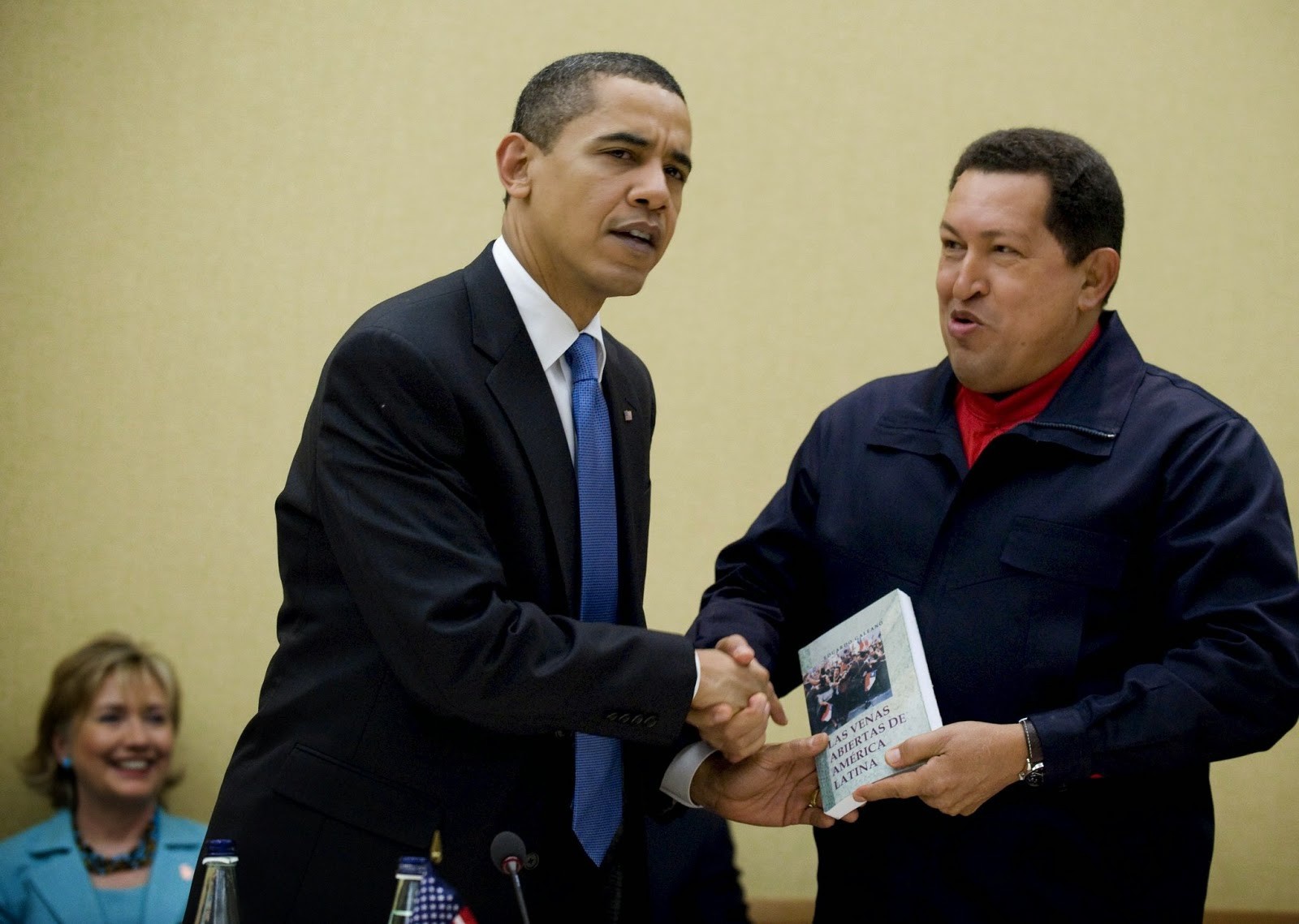Note the book that Obama is giving Maduro. “la venas abiertas de américa latina” which translates to “Open veins to Latin America.” The point is that the “evil” West, especially American, has been illegally and unethically stealing resources from Latin America. The author appears to believe Cuba is the greatest success story on earth and the model we should all be striving to emulate. He is very fond of Karl Marx and even writes stylistically similar to Marx’s Manifesto. A bunch of whiny Leftist diatribe. Obama hates America. Never forget that.